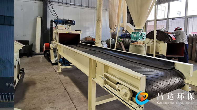 2、磁輥作業加之主軸錘(chuí)片旋(xuán)轉(zhuǎn)作(zuò)業。高強磁輥作業之後,錘片進(jìn)行擊打切割作用,之後再由(yóu)篩(shāi)網過濾而出,整個工藝流程簡單明了,實現了物料的(de)先破碎後粉碎,不再擔(dān)心大物料會打壞易損件;
